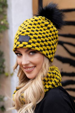 Nádherná dámska čiapka s brmbolcom a nákrčník na zimu Kamea Imelda v dvojfarebnej kombinácií medovej a čiernej dodá vášmu zimného outfitu štýl. Set je podšitý teplým flísom, ktorý spoľahlivo zahreje počas chladných dní. Čiapka má jemný previs dozadu ukončený trendy brmbolcom v čiernej farbe. Vpredu je logo značky. Čiapka Imelda vám poskytne maximálny komfort, je úžasne teplá a príjemná na dotyk. Tunelový šál je praktickou a elegantnou náhradou klasického zimného šálu. Nákrčník je pohodlný, ľahko sa oblieka, krásne prilieha a spoľahlivo zahreje v chladnom počasí. Dokonale zladené farby robia z tohto setu originálny a elegantný doplnok, ktorý dodá vášmu zimnému outfitu štýl a šmrnc.
