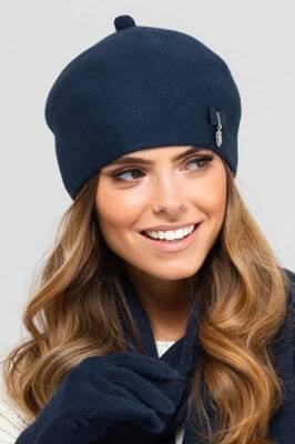 Tmavomodrá dámska elegantná baretka na zimu Kamea Murcja