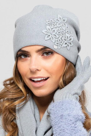 Šedá elegantná dámska čiapka s kvetinkami Kamea Malaga