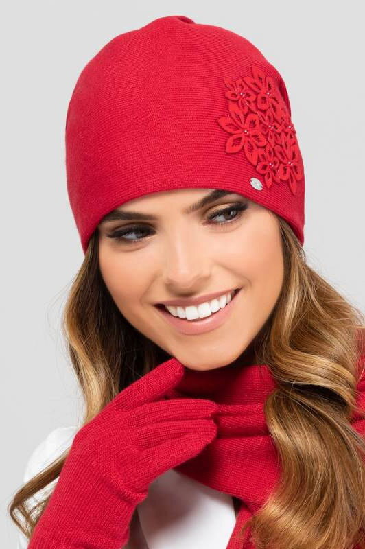 Atraktívna červená dámska čiapka na zimu Kamea Malaga je pútavým zimným doplnkom, ktorý dokonale vyzdvihne váš elegantný outfit. Na prvý pohľad vás upúta nádherná kvetinová aplikácia s korálkami. Čiapka je ukončená na trojitý previs dozadu, ktorý pôsobí veľmi trendy. Jednofarebné hladké prevedenie robí z tejto čiapky ľahko kombinovateľný kúsok.