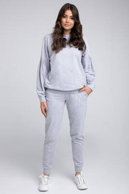 Dámska sivá tepláková súprava Italian Fashion Parma je štýlová a veľmi pohodlná, vyrobená z mäkkej bavlny. Súčasťou je trendy mikina voľnejšieho strihu a mierne obtiahnuté nohavice. Vrchný diel je s dlhými rukávmi s manžetami a má okrúhly výstrih. Spodný okraj mikiny je ukončený na širší elastický lem. Dlhé nohavice s manžetami majú po bokoch praktické vrecká. V páse majú širšiu, pohodlnú gumu.