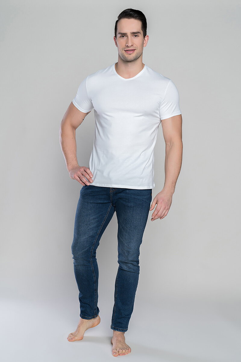 Pánske bavlnené tričko s výstrihom do V Italian Fashion Ikar biele