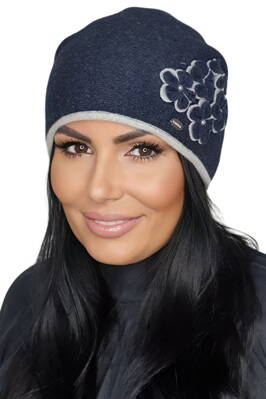 Tmavomodrá dámska zimná čiapka s kvietkami Kamea Lorelli