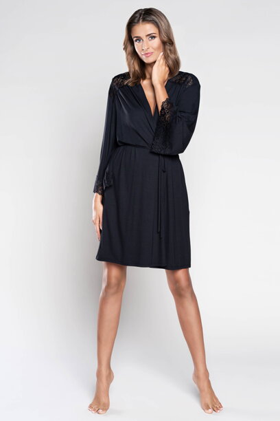 Dámsky župan s čipkou Italian Fashion Inspiration čierny