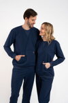 Trendy pánske domáce oblečenie Italian Fashion Fox v tmavomodrej farbe je veľmi pohodlný dvojdielny komplet, ktorý tvorí mikina a nohavice. Domáce oblečenie môžete využiť aj ako trendy teplákovú súpravu. Vrchný diel má dlhé rukávy s manžetami. Spodný okraj mikiny je ukončený na širší elastický lem. Vpredu je väčšie klokanie vrecko ozdobené logom značky Italian Fashion. Okolo krku má mikina okrúhly výstrih, ktorý je lemovaný jednofarebným okrajom. Spodný diel tvoria dlhé nohavice, ukončené na manžety. Majú pohodlnú gumu v páse. Pánske domáce oblečenie Fox je hrubšie, teplé ale zároveň veľmi priedušné. Vyrobené z mäkkej, priedušnej bavlny v MEGA SOFT kvalite, ktorá sa postará o vaše maximálne pohodlie.