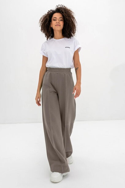 Dámske tepláky Mosquito Costa Simply Taupe mocca: štýlové široké tepláky pre vysoké ženy