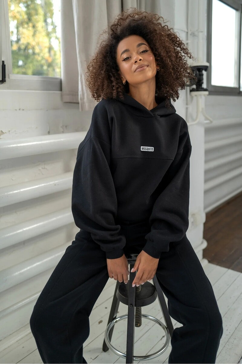 Trendy dámska mikina Mosquito Camp Black s kapucňou a klokaním vreckom: vhodná na každé ročné obdobie
