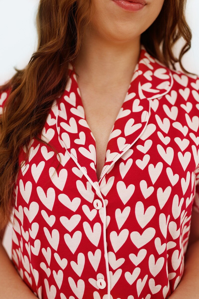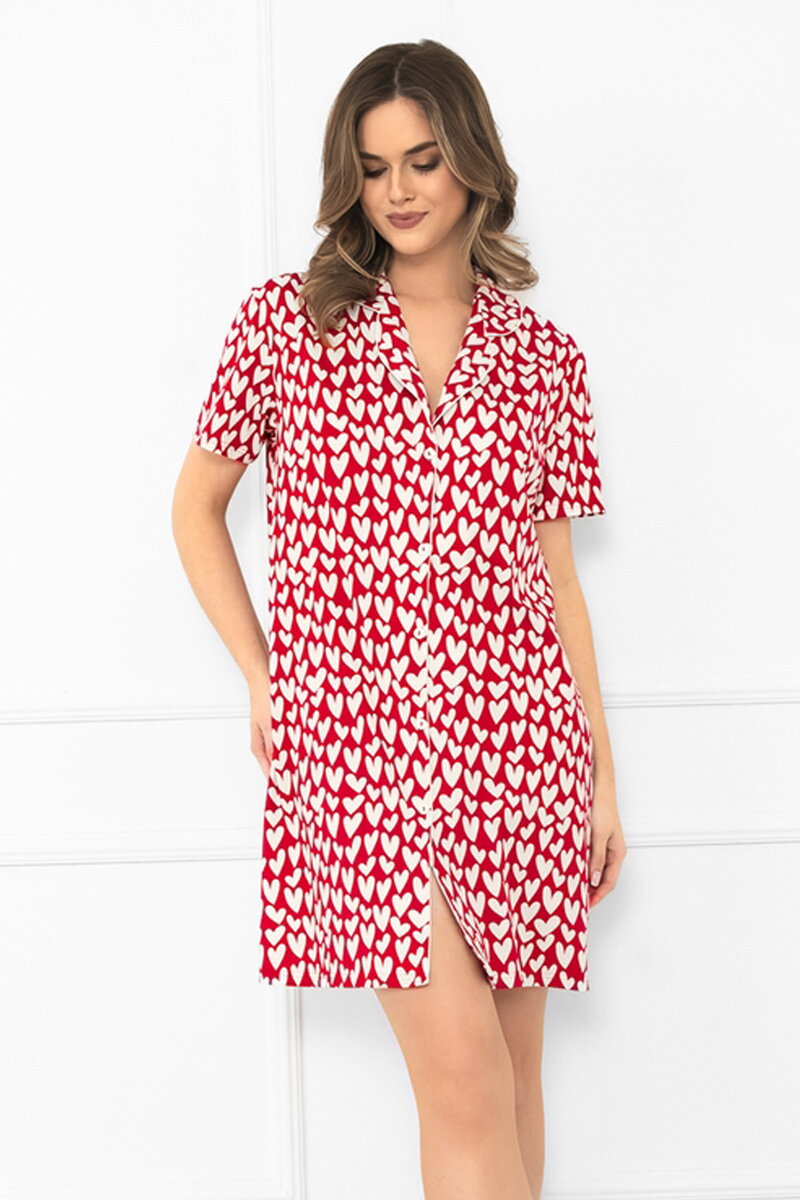Dámska bavlnená nočná košeľa so srdiečkami Italian Fashion Xenia červená